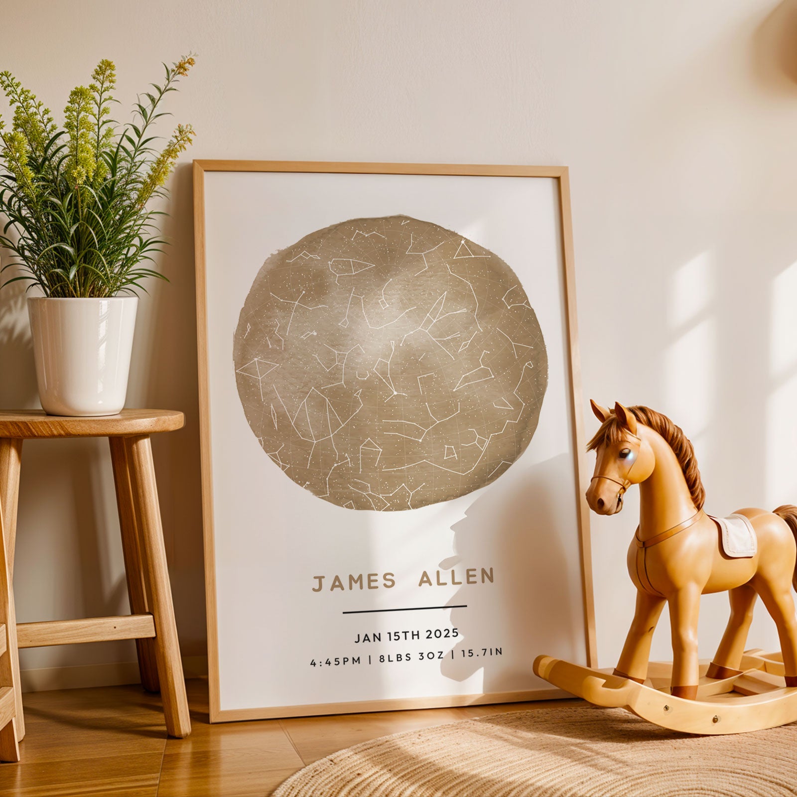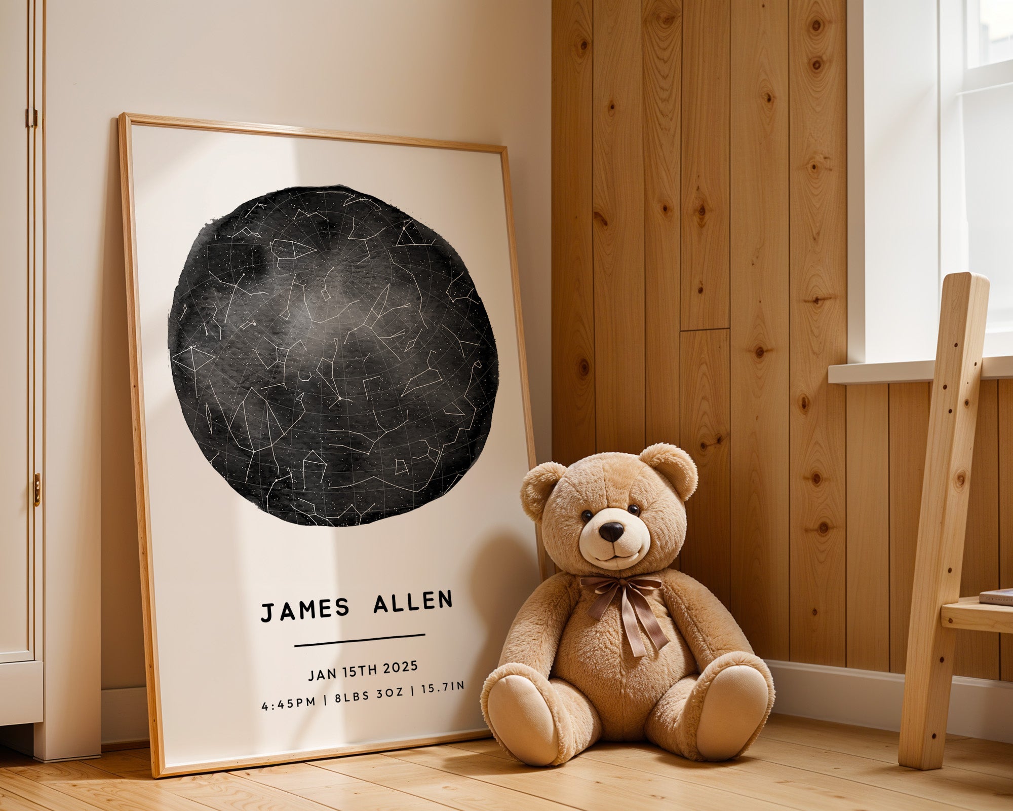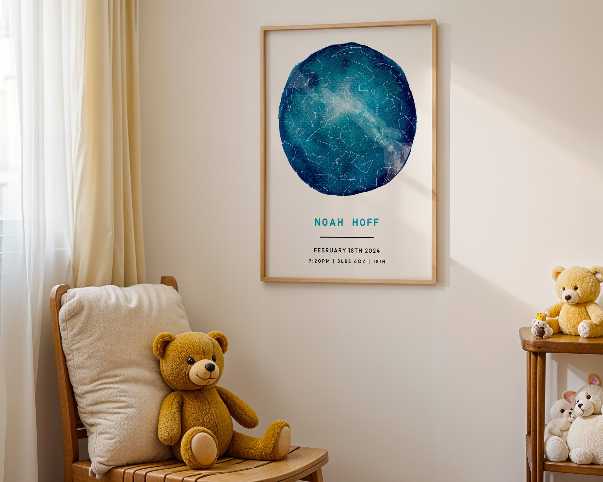 Welcome to the world’s most meaningful wall art for your child. The Nursery Star Map from SentiMap captures the night sky of your special date — birth night, adoption day — and creates a print designed for nurseries and kids’ spaces. Printed on premium paper with optional frame selection.